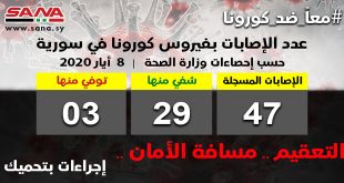 DAMASCUS, (ST)_ Two new infections with Covid-19 have been registered thus raising the number of infections from 45 to 47, according to Syrian Health Ministry.