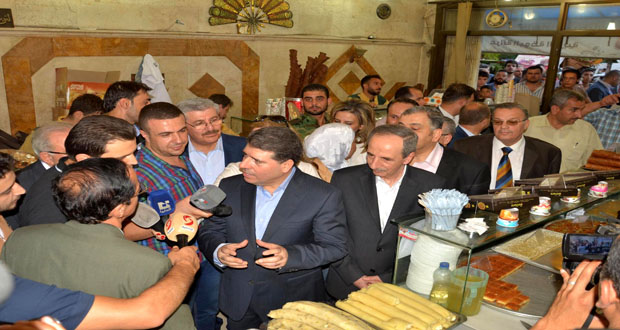 Earlier, al-Halqi, heading an economic ministerial delegation, inspected the situation of Aleppo markets on a field visit on Thursday where he checked on the purchase and sale movement and the availability of food supplies.