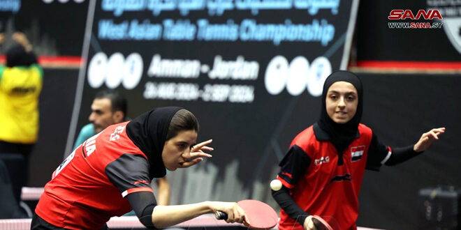 Amman – (ST)- The Syrian women’s table tennis team on August 28th won the West Asian Championship held in the Jordanian capital, Amman, in the women’s category and in the under 11/15/17 years age category in the female doubles.