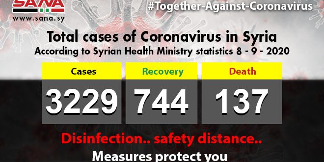 The Ministry said in a statement that the total number of Coronavirus infections registered in Syria has risen to 3229 so far, among which 744 have recovered and 137others passed away.