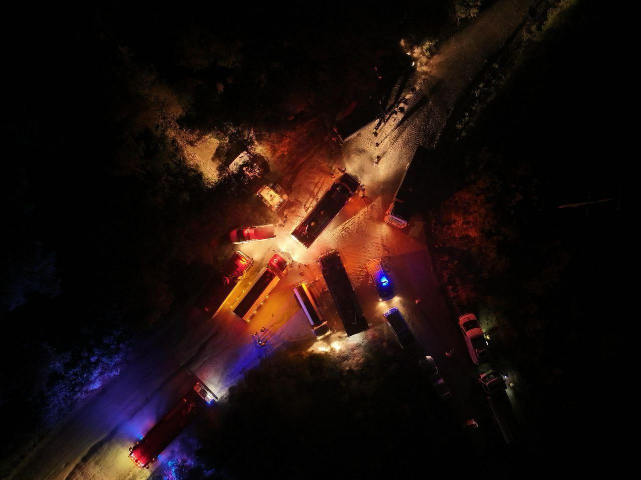 The photos show the ongoing efforts to extinguish the fire throughout last night.