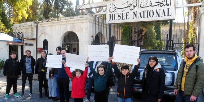 The girl reflects – during the stand that was staged today in front of the museum-the hopes of an entire generation to preserve the cultural identity of Syria.