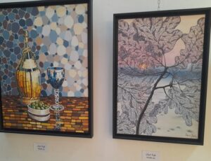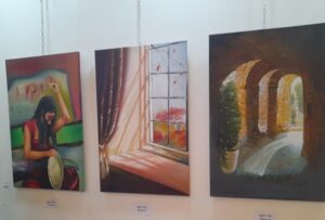 The artists displayed paintings using oil and acrylic colors and the paintings depicted various topics including women, flowers and nature which related to different artistic schools and styles such as expressionism, romanticism, impressionism and realism.