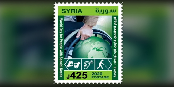 The Syrian Post Corporation issued a commemorative stamp on the occasion of the International Day for People with Disabilities.