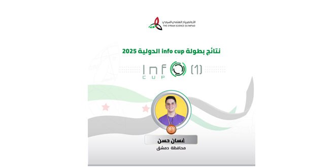 Syria wins a medal bronze in the “Info 1 CUP” International Informatics Championship for 2025, which was organized by Romania in its ninth edition remotely from February 7 to 9.