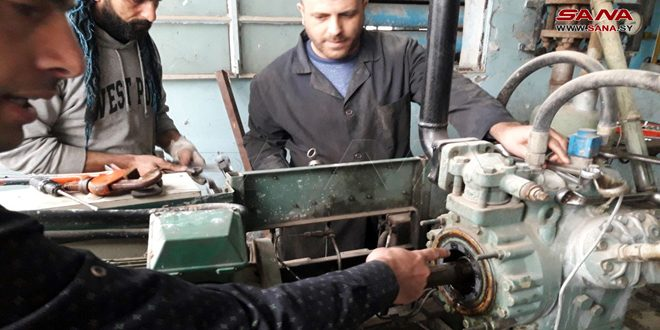 The technical team of the Syrian Trading Corporation, Hama Branch, completed the repair of a German hydraulic compressor of the “Peters” type, and returned it to the operating system in the refrigeration unit, thus saving millions of Syrian pounds, and raising its storage capacity to 3400 tons, after its success last July in re-operating a Japanese compressor.