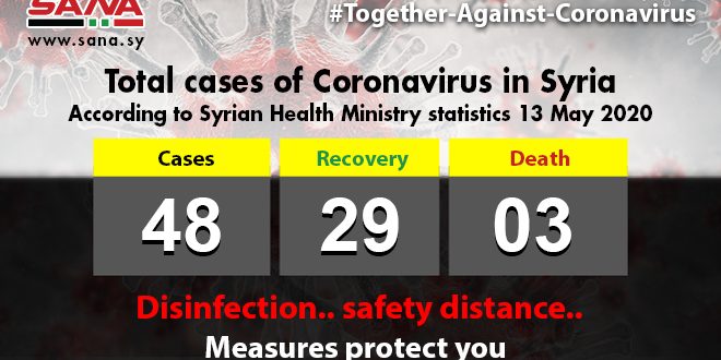 The number of Coronavirus infections has risen from 47 to 48 after the registration of a new case by Syrian Ministry of Health.