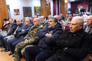 On the occasion of Al-Quds Cultural Day, the Al-Quds International Foundation – Syria, the Syrian Arab Popular Committee for Supporting the Palestinian People, and the Palestinian resistance factions organized a symposium at the Cultural Center in Abu Rummaneh in Damascus entitled “The Al-Aqsa flood and its consequences on the Palestinian issue, the region, and the world”.