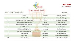 In a statement to SANA reporter, Rawda Al-Muktaf said that, the Syrian team achieved first, second and fourth place in multiplication and third place in division.