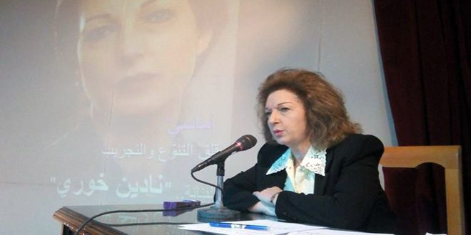 The Arab Cultural Centre at Abou Roumaneh in Damascus recently held dialogue evening with famous Syrian actress “Nadin Khouri” to highlight her eventful career and to honor her as one of the pillars that contributed to the development of the Syrian drama and the country’s art life in general.
