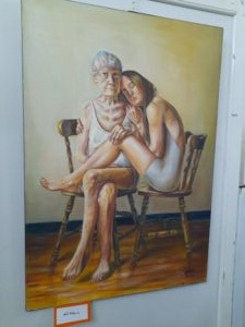 Participant artist Taghreed Rababa told Syria times that she displayed a painting that tells about the struggle of man with his society, as he tries to get out of the outdated customs and traditions of his society, but he cannot.