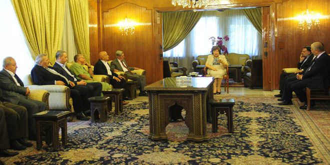 DAMASCUS- Vice President Dr. Najah al-Attar met on Thursday a Jordanian delegation, headed by the Assistant Secretary General of the Union of Arab Lawyers Samih Khreis.