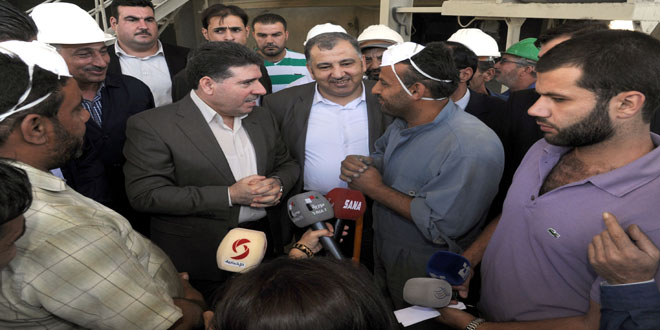 Al-Halaqi said that the tour comes in implementation of President Bashar al-Assad’s directives about keeping in touch with all productive work sectors, pointing out that the workers sticking to their workplaces during the feast holiday and their insistence on production and providing the needs of citizens prove the vitality, steadfastness and willpower of the Syrian people in spite of all what they suffered during the criminal terrorist war waged on Syria, SANA reported.