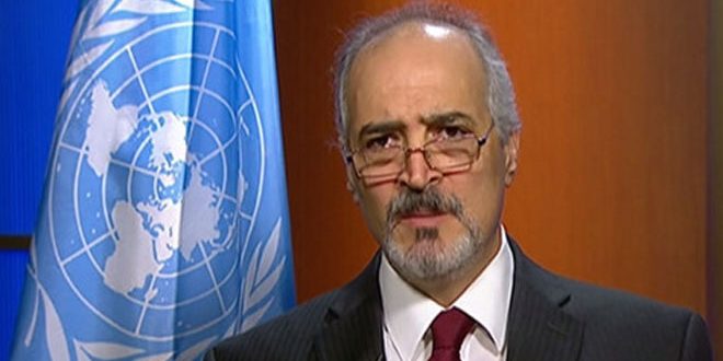 NEW YORK, (ST)- Syria’s Permanent Representative to the United Nations Bashar al-Jaafari and UN Secretary General Antonio Guterres on Wednesday held a meeting in which they discussed the American aggression on the Syrian territories, Syria’s stance on conducting a transparent and objective investigation in the Khan Sheikhoun town and al-Shayrat airbase in Homs and Syria’s cooperation I with the UN commissions and agencies to provide humanitarian assistance, particularly to crisis-affected citizens inside the Syrian territory.
