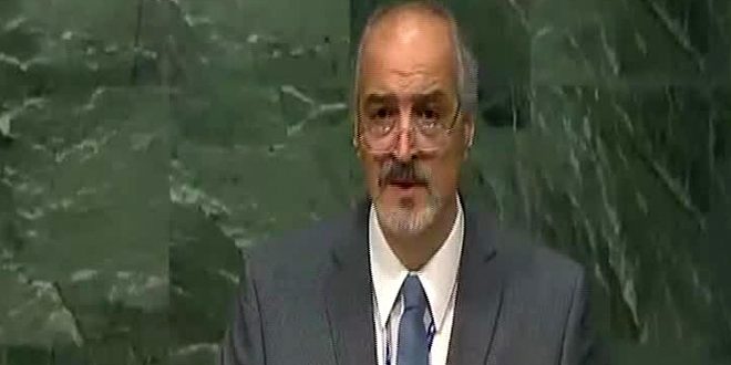NEW YORK-Syria’s Permanent Representative to the United Nations Dr. Bashar al-Jaafari said that any effort for fighting terrorism will not succeed if it violates international law and if it’s carried out without coordination with the governments of concerned states, stressing that the only successful way to fight terrorism is to establish an active international alliance within the framework of international law and with the participation of concerned states, first among them being the Syrian state, SANA reported.
