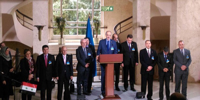 GENEVA, (ST)-Head of the Syrian Arab Republic’s delegation to the Intra-Syrian talks in Geneva Bashar Al-Jaafari said “we dedicated considerable time for the talk on the irresponsible and provocative behavior of head of the Israeli occupation government Benjamin Netanyahu who called on his cabinet to meet in the occupied Syrian Golan.”