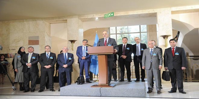 Geneva – The delegation of the Syrian Arab Republic to the Syrian-Syrian dialogue in Geneva held a session of talks on Friday with the UN Special Envoy for Syria Staffan de Mistura at the UN Headquarters in Geneva.