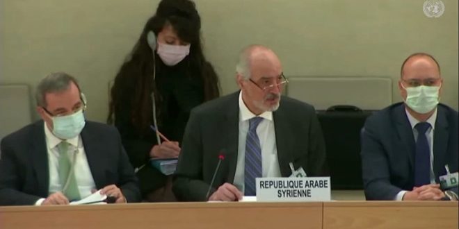 Deputy Minister of Foreign Affairs and Expatriates, Dr. Bashar al-Jaafari affirmed that the terrorist war against Syria, the foreign occupation of part of its lands, and the continuation of external support for terrorism have caused catastrophic repercussions on the human rights situation in it.   The Western countries, led by the United States and the European Union, imposed unilateral coercive economic measures targeting the Syrian citizen and his right to lead a decent life.