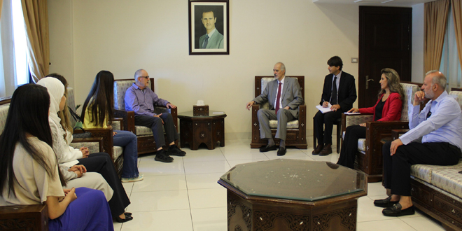 On September 21st, Bashar Al-Jaafari, the Deputy Minister of Foreign Affairs and Expatriates, received the Australian writer and professor Tim Anderson, founder of the “Hands Off Syria” group and a member of the “Friends of Syria” group, accompanied by a number of researchers and defenders of Syria.