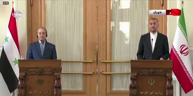 Al-Mikdad made the remarks during a joint news conference on Wednesday in Tehran with his Iranian counterpart Hussein Amir Abdollahian following yesterday’s meeting of the three guarantor states of Astana process on Syria (Russia, Iran and Turkey).