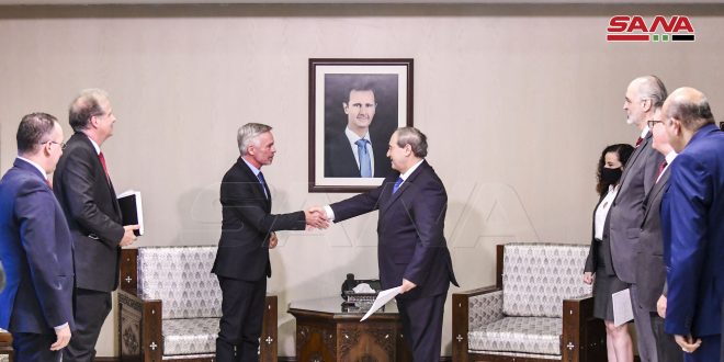 Al-Mikdad receives credentials of Christophe Martin as new head of the ICRC mission in Syria