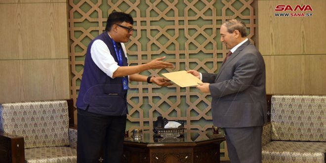 Damascus, (ST) – The Minister of Foreign Affairs and Expatriates on Wednesday received the credentials of Sudipto Mukherjee, the Resident Representative of the UNDP in Syria.