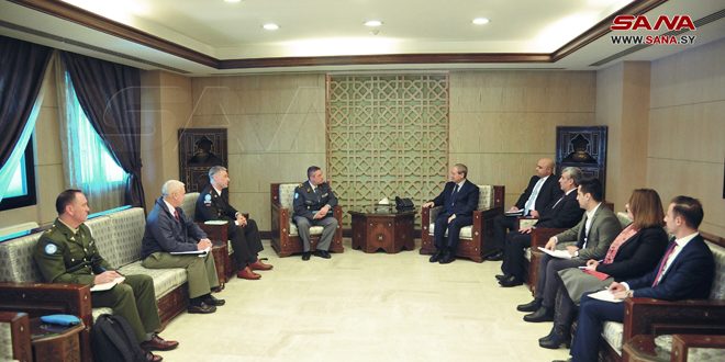 Damascus, (ST) – The Minister of Foreign Affairs and Expatriates Faisal Al-Mikdad met on Wednesday with Major General Patrick Gauchat, Head of the United Nations Truce Supervision Organization (UNTSO) mission concerned with monitoring ceasefire in the Middle East, and the accompanying delegation.