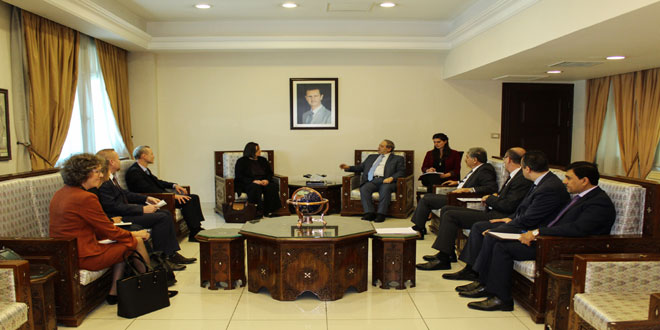 DAMASCUS, (ST)- The Syrian state has been exerting great efforts to eliminate the danger of the landmines left behind by terrorists in the areas liberated from terrorism by the Syrian Arab Army, Deputy Minister of Foreign Affairs and Expatriates Faysal al-Mikdad said during a meeting on Monday with Secretary General of the Norwegian People’s Aid (Norsk Folkehjelp) Henriette Westhrin and the accompanying delegation.