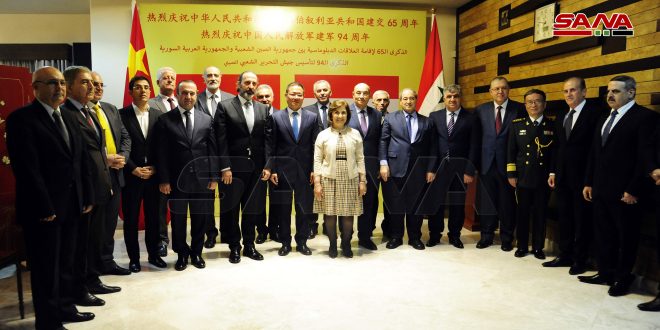 Damascus (ST): The Embassy of the People’s Republic of China held a reception on the occasion of the 65th anniversary of the establishment of diplomatic relations with Syria and the 94th anniversary of the founding of the People’s Liberation Army of China at the home of the Chinese ambassador in Damascus.