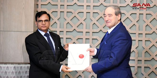 The Minister of Foreign Affairs and Expatriates, Dr. Faisal Al-Miqdad, received Ambassador Ershad Ahmed, and received from him a copy of his credentials as Ambassador of the Republic of India to the Syrian Arab Republic.