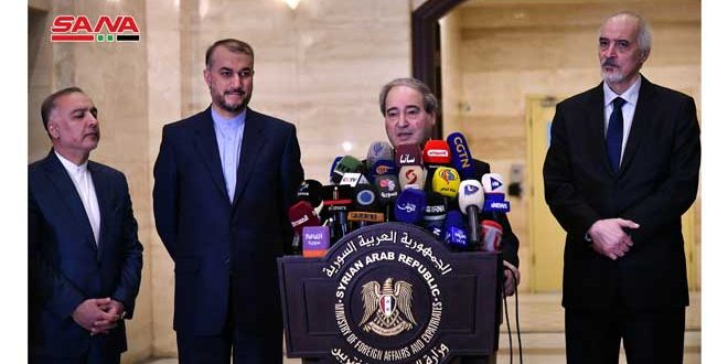 Damascus, (ST) – The Minister of Foreign Affairs and Expatriates Dr. Faisal Al-Miqdad, affirmed that relations between Syria and Iran are strategic and are always moving forward. He pointed out that the two countries are working to overcome the effects of the illegal Western economic measures imposed on their peoples.