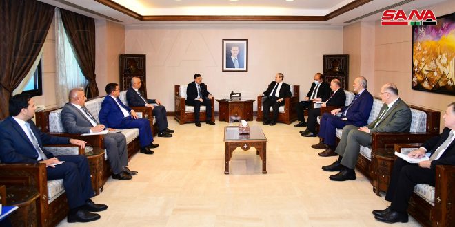 DAMASCUS, (ST)_Minister of Foreign Affairs and Expatriates Faisal Al-Miqdad received on Thursday the Iraqi Minister of Water Resources Mehdi Rashid Al-Hamdani and the accompanying delegation.