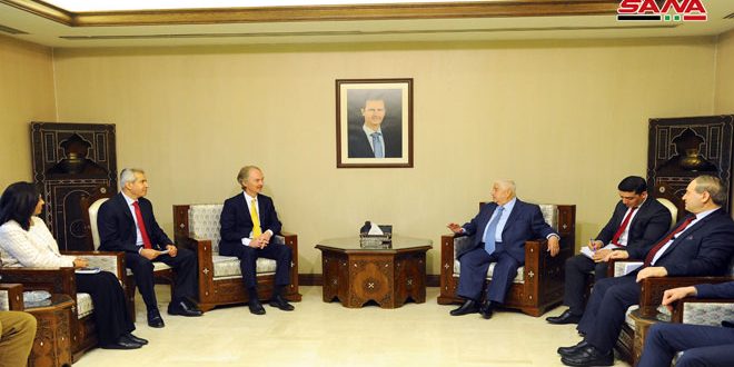 Al-Moallem, Pedersen Discuss Efforts Exerted to Find Solution to Crisis in Syria