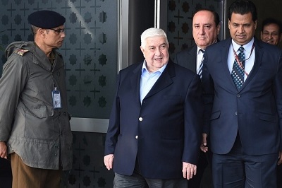 NEW DELHI, (ST)- Deputy Premier, Minister of Foreign Affairs and Expatriates Walid al-Moallem and the Indian National Security Advisor Ajit Doval yesterday discussed the political situation in the Middle East, anti-terror efforts, ways to attain political solution in Syria and methods of enhancing bilateral ties between Syria and India.