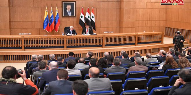 For his part, Minister Arreaza said “I agree with Minister al-Moallem that the US conspiracy which is targeting our countries is one, “adding that “The Venezuelan and the Syrian people are resisting the imperialism and the US conspiracies and they will triumph.”