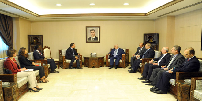 DAMASCUS– Deputy Prime Minister, Minister of Foreign Affairs and Expatriates Walid al-Moallem met on Sunday Commissioner-General of the United Nations Relief and Works Agency for Palestine Refugees in the Near East (UNRWA) Pierre Krahenbuhl and the accompanying delegation.