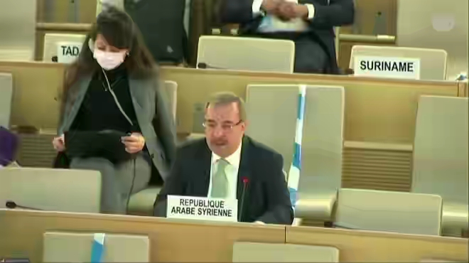 Ambassador Ala continued: Syria condemns the occupation’s practices and violations in the occupied Golan and calls on the Human Rights Council to document these practices and hold the occupation accountable for them.