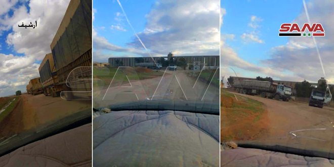 Local sources told SANA correspondent that the occupation forces brought out 12 trucks carrying stolen Syrian wheat from Tal Alou silos in Al-Yaroubiyyeh area in Hasakah to the north of Iraq via Simalka border crossing.