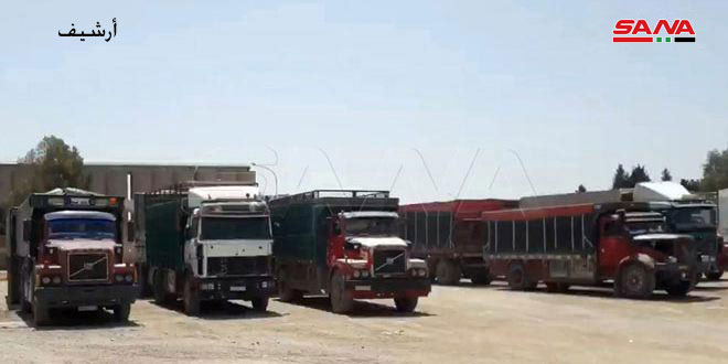 Local sources from the village of Al-Suwaydiyah in the Yarubiyah countryside, northeast of Hasakah, told a SANA reporter that a convoy of 32 trucks loaded with stolen Syrian wheat exited through the illegal Al-Waleed crossing, accompanied by a number of SDF vehicles towards Iraqi territory.