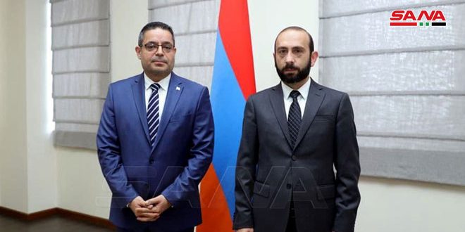 The Armenian Minister of Foreign Affairs Ararat Mirzoyan has stressed his country’s keenness on enhancing cooperation with Syria in all domains, reaffirming Armenia’s support for Syria’s unity and sovereignty.