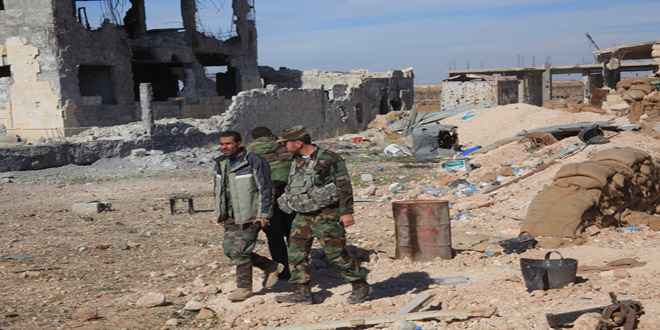 Meanwhile, Army units hit gatherings and hotbeds for ISIS terrorists in the neighborhoods of al-Hamediyeh, al-Hweiqa and al-Sina’a in Deir Ezzor city and destroyed all of them.