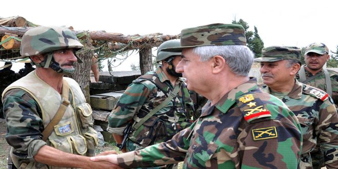 LATTAKIA- Delegated by President Bashar al-Assad, Chief of the General Staff of the Army and Armed Forces Gen. Ali Abdullah Ayoub paid a field visit to army units operating in Lattakia countryside.