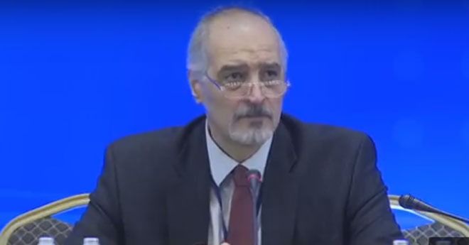 ASTANA, (ST)- Head of the Syrian Arab Republic delegation to Astana 8 meeting, Dr.  Bashar Al-Jaafari has stressed that the Syrian government considers the Turkish and US forces presence in Syria as an aggression.
