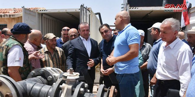 The Minister of Water Resources Hussein Makhlouf has put into service the Al-Jareifat water project so as to irrigate the city of Misyaf. The Minister further put into service the drinking water desalination plant project in the village of Sheikh Ali Kasun in the northern Salamiyah countryside. He also reviewed the final stages of the rehabilitation project for the Hama irrigation network.