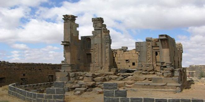 Director of Sweida Antiquities Department Nashaat Kiwan told SANA that “among the most prominent archeological sites in the town of Atil are two almost identically designed Roman temples, delicately fashioned from the local basalt stone.