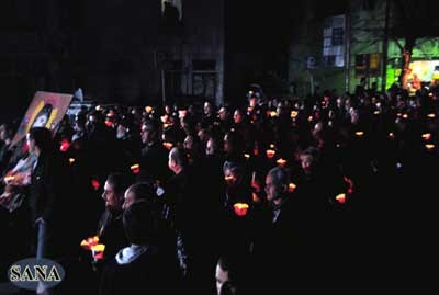 DAMASCUS,(ST)_ Thousands of citizens have  participated in the march of lit candles called for by  religious, popular  and youth activists in Bab Touma on Saturday evening  emphasizing  the fact that Syria is the land of amity and brotherhood among  all its people.