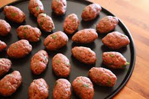• Divided mixture into equal size and shape into small patties or fingers.  Place on an oven tray and bake for 15 minutes at 350 degrees or fry in pan until meat is cooked.