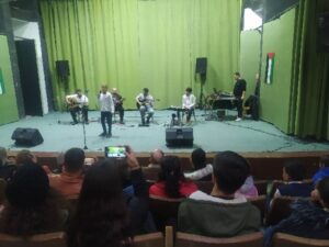 He continued: Our beginning was with the Dandana band, and we continued under the supervision of Mr. Muhammad . Today is our first participation in Baniyas, where we have previously performed in Tartous, Lattakia, Homs, and Aleppo. The project consists of six people: guitarist “Ghadir Othman”, Oud “ZainArous” , singer Rami Othman”, Gabi Elias” percussion, piano Hussein Al-Shater in addition to My role as arranger and guitarist.