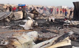 At least 45 Palestinians were burned alive by the Israeli occupation in refugee tents set up by UNRWA, west of Rafah, in the south of the Gaza Strip, after it had forcibly displaced them from the city a week ago, following a series of displacements from the north of the Strip to its center and then its south.