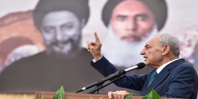 Berri said in his speech in the city of Tire in southern Lebanon: “We affirm our support for Syria’s leadership, army and people.”
